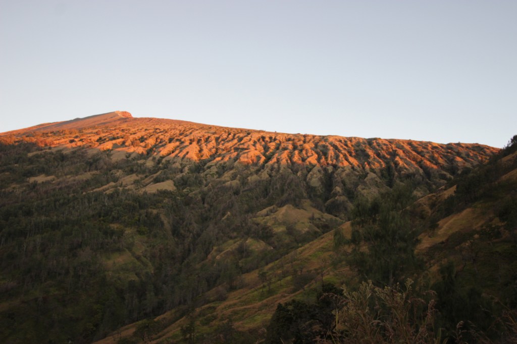 Di pos 2 saya beristirahat makan siang (yang sebenarnya sudah telat), saya sempat hampir menyerah di kondisi badan yang sangat teramat payah. Kemudian saya pun ditemani salah satu TL namanya Sam, kami menyusuri jalur pendakian perlahan demi perlahan. Ditambah lagi pendakian melewati bukit penyesalan yang memperlihatkan keindahan kaki bukit di bawah sinar senja. Saya tidak sempat berlama-lama untuk dokumentasi sebab fokus saya saat itu yakni saya harus sampai di pos Plawangan Sembalun sebelum malam.