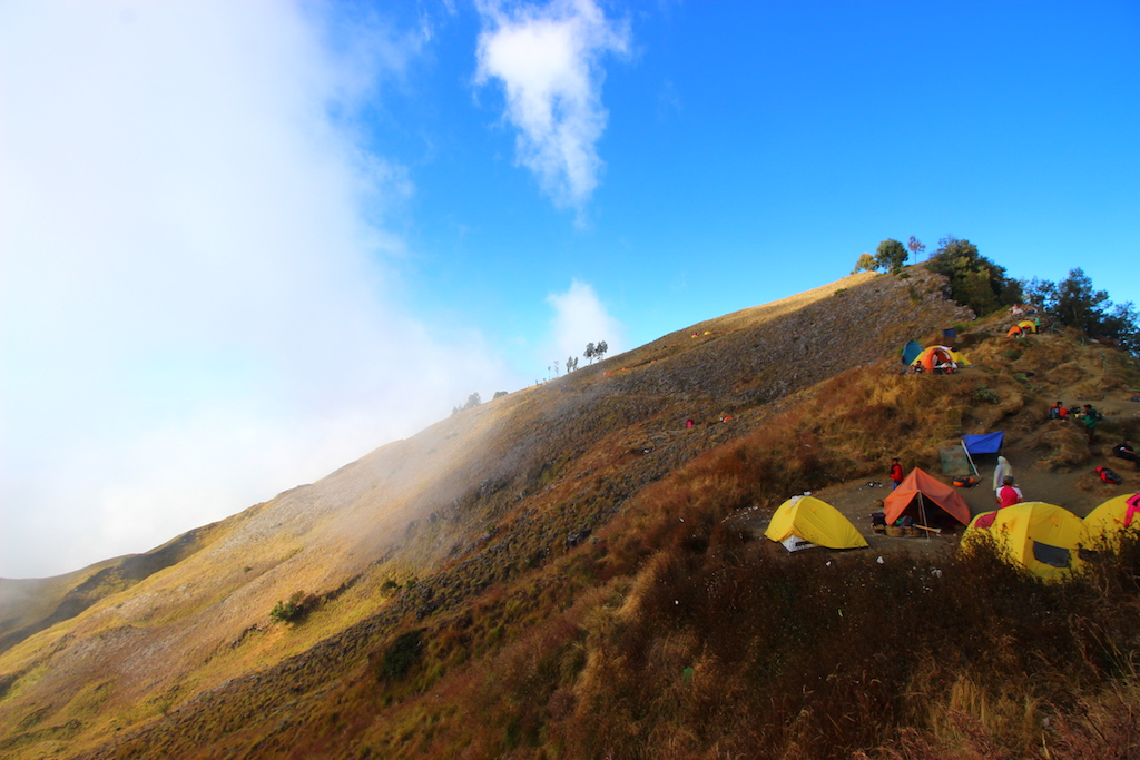 Angin bertiup cukup kencang di Plawangan Senaru dan matahari mulai terik kembali. Target kami tiba di tempat bermalam selanjutnya yakni Pos 3 Senaru, sebelum gelap. Untungnya kami tiba di sana masih sore hari. Jadi masih banyak waktu bersantai dan bersenda gurau dengan rombongan.