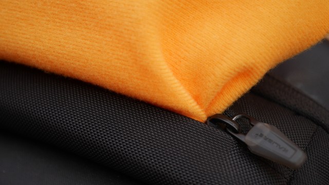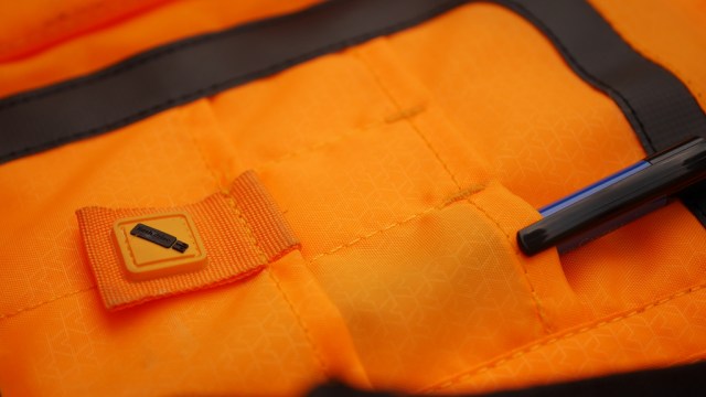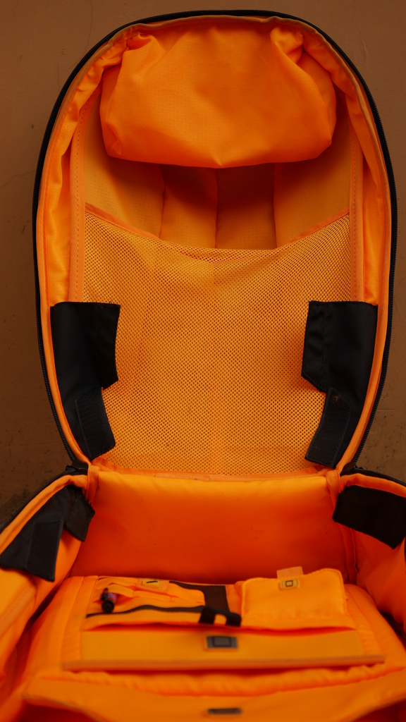 Mungkin ada yang penasaran kenapa bagian dalam tas berwarna jingga (orange). “Norak amat ya desainnya”. Sebagai informasi, desain tersebut disengaja agar memudahkan kita mencari barang di dalam tas ketimbang bagian dalam tas yang berwarna gelap.